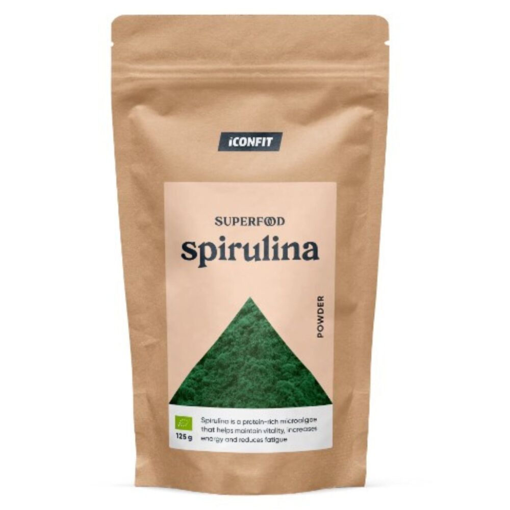 ICONFIT organinė spirulina – ekologiški supermaisto milteliai su itin dideliu baltymų kiekiu ir detoksikacinėmis savybėmis, puikus kasdienės mitybos priedas.